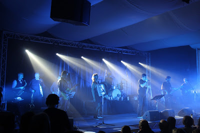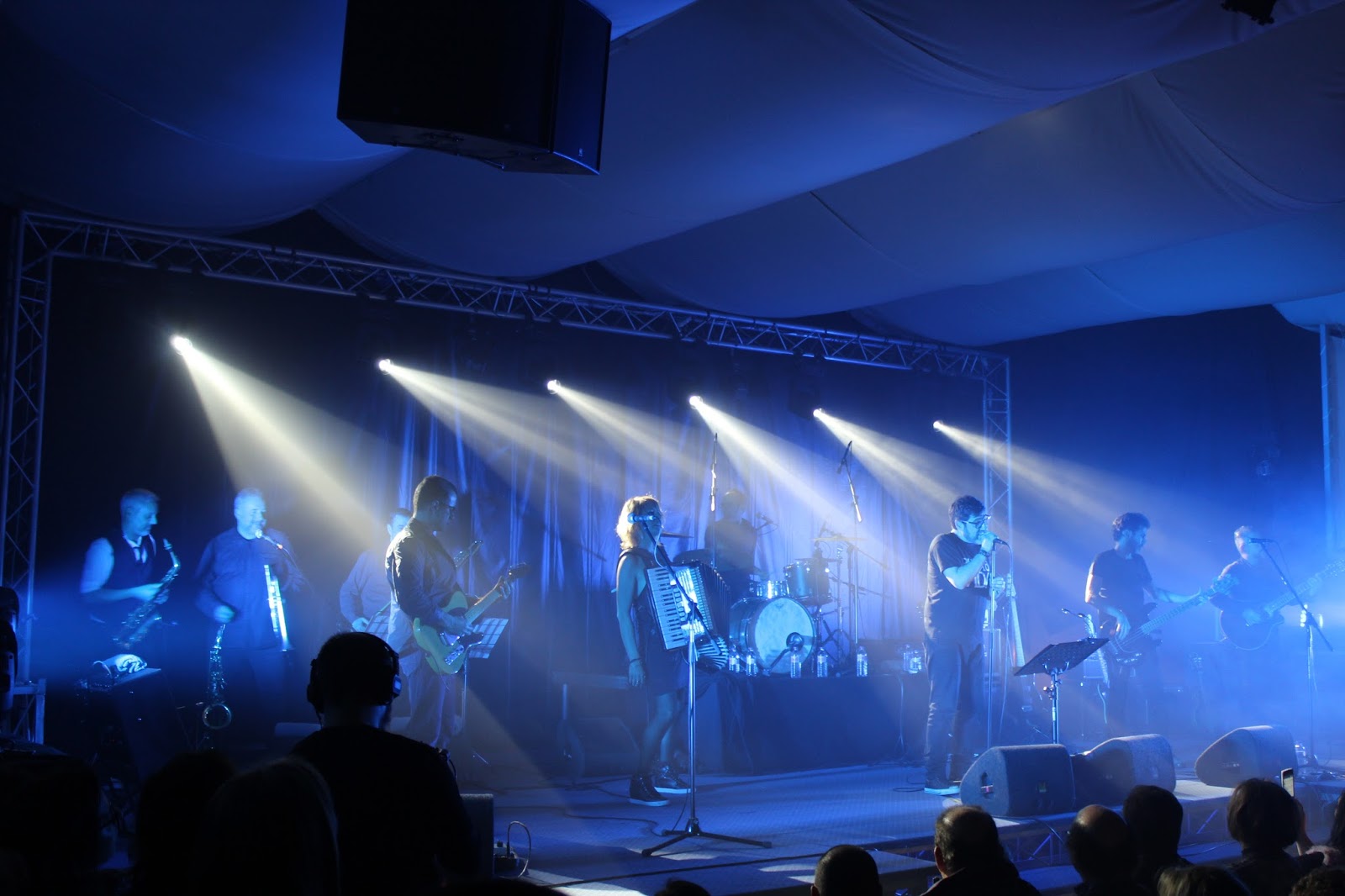 Os primeiros a subir ao palco foram Francisco Resende e Mitó Mendes, guitarrista da formação inicial de Sitiados e a voz d’ “A Naifa”, respectivamente. De xaile nos ombros e num ambiente intimista, apresentaram a primeira música, “Fado da Traição”. Ao longo da música, Samuel Palitos, na bateria, Mário Miranda, no baixo e Rodrigo Dias na guitarra acústica foram subindo ao palco, para logo de seguida darem início ao segundo tema, “Amanhã”. Francisco Resende não deixou de dizer as suas palavras em nome de todos os participantes, destacando a coragem de Gabriela, José e Pedro, os pais e irmão de João Aguardela, e também a dos pais de Fernando Fonseca, o primeiro baterista de Sitiados, que nos deixou em 2015. Frisou ainda que era por João Aguardela e Fernando Fonseca que estavam ali, nesta sexta-feira de festa. O último tema interpretado por Mitó foi “Os Dias Sem Ti”, a música em que entra Sandra Baptista, a mulher de Sitiados e o “acordeão com pernas”, nome pelo qual era conhecida nos anos em que pisou os palcos com o seu acordeão.